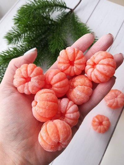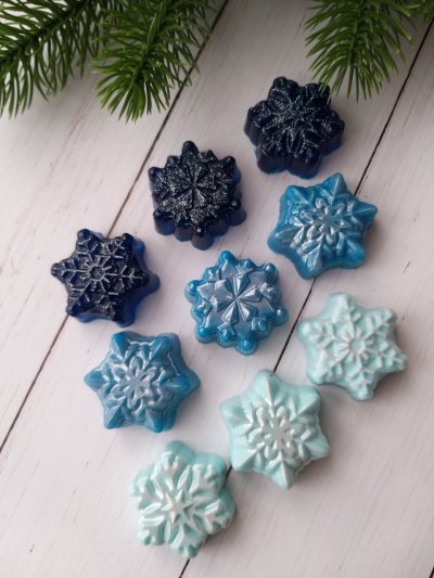 Упакованы в индивидуальный пакетик с лентой. Можно также упаковать по несколько штук в один пакетик. Цвет в ассортименте. Аромат новогодний=)